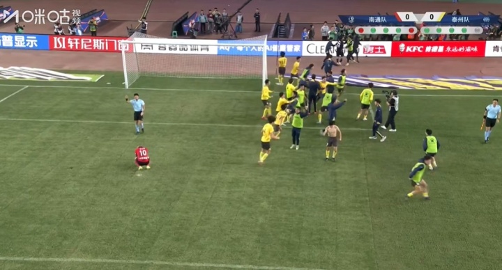 11月01日訊 蘇超決賽點球大戰(zhàn)第五罰,南通隊長李賢成主罰被泰州門將戴曜城撲出!比賽就此結(jié)束!泰州4-3南通奪得冠軍!